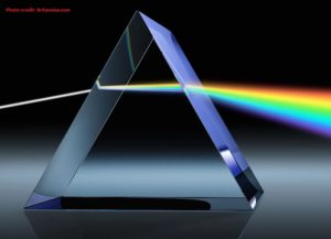 First, Newton showed that white light, such as sunlight, is made of a spectrum of colors. When he sent a narrow beam of sunlight towards one side of a glass prism, what came out, on the other side, was a spectrum of colors (Pic.3). This ‘chromatic dispersion’ is caused by a phenomenon called refraction of light. More on refraction and chromatic dispersion in a moment.