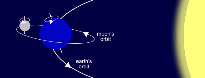 In order to understand how the Moon’s tilt causes this, we should first look into when eclipses are possible. The picture below shows the Earth-Moon system, as it goes around the Sun, at four different points of time in a year. As the picture below shows, the orbital plane of the Moon is inclined to the ecliptic plane – by about 5 degrees.